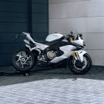 The 750SR-S is a masterpiece of modern motorcycle sculpture — every curve, from its aerodynamic fairing and muscular tank to angular tail, high-mounted quad exhaust, and front wings, blends aggressive performance with timeless elegance. A rolling work of art at just 213kg, with triplespoke rims, single aluminum swingarm, LED lighting, 43mm USD forks, monoshock rear, premium KYB suspension, and Brembo brakes for agile, futuristic style that commands attention day or night.